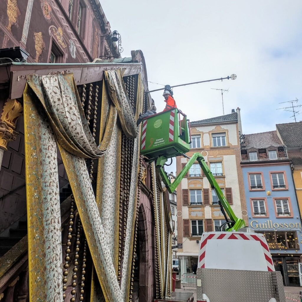 C’est reparti pour une nouvelle journée d’installation Place de la Réunion à Mulhouse, sous un froid qui pique un peu mais heureusement sec ![]()