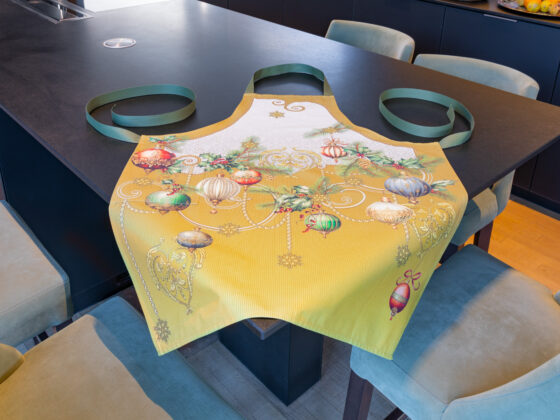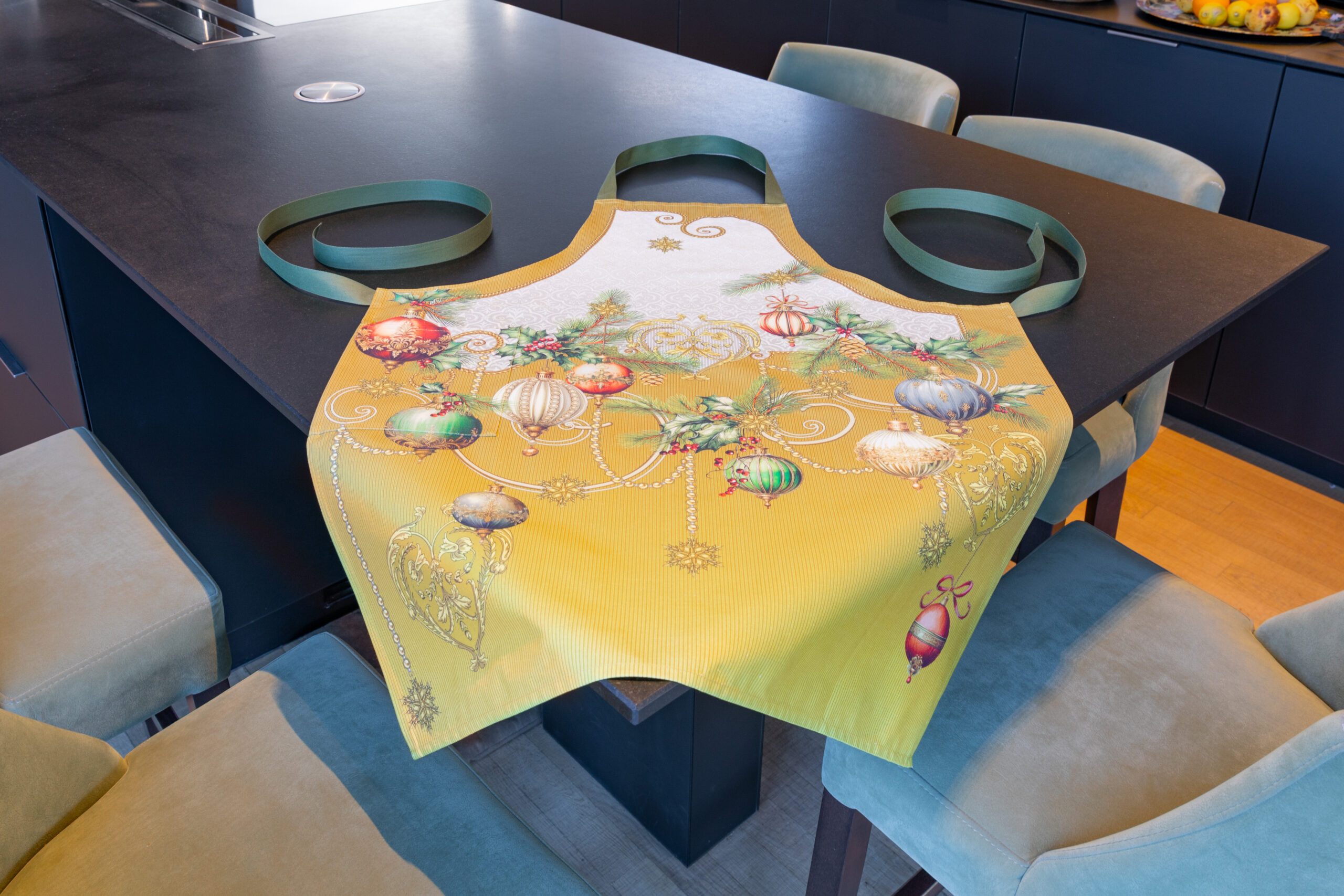 Delicately decorated Christmas apron, to share the magic of the festive season in the kitchen.
