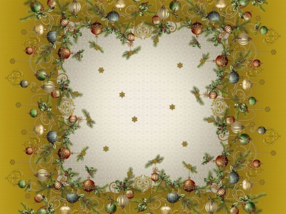 Delicately decorated Christmas tablecloth for an elegant and timeless table.