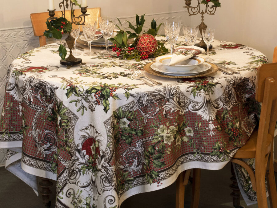 Cette nouvelle collection « Au cœur de Noël » révèle un décor riche et raffiné : boules délicatement ouvragées, branches de sapin, houx et guirlandes perlées se déploient sur un fond ornemental subtil, évoquant les fastes d’un Noël d’antan réinterprété avec modernité…