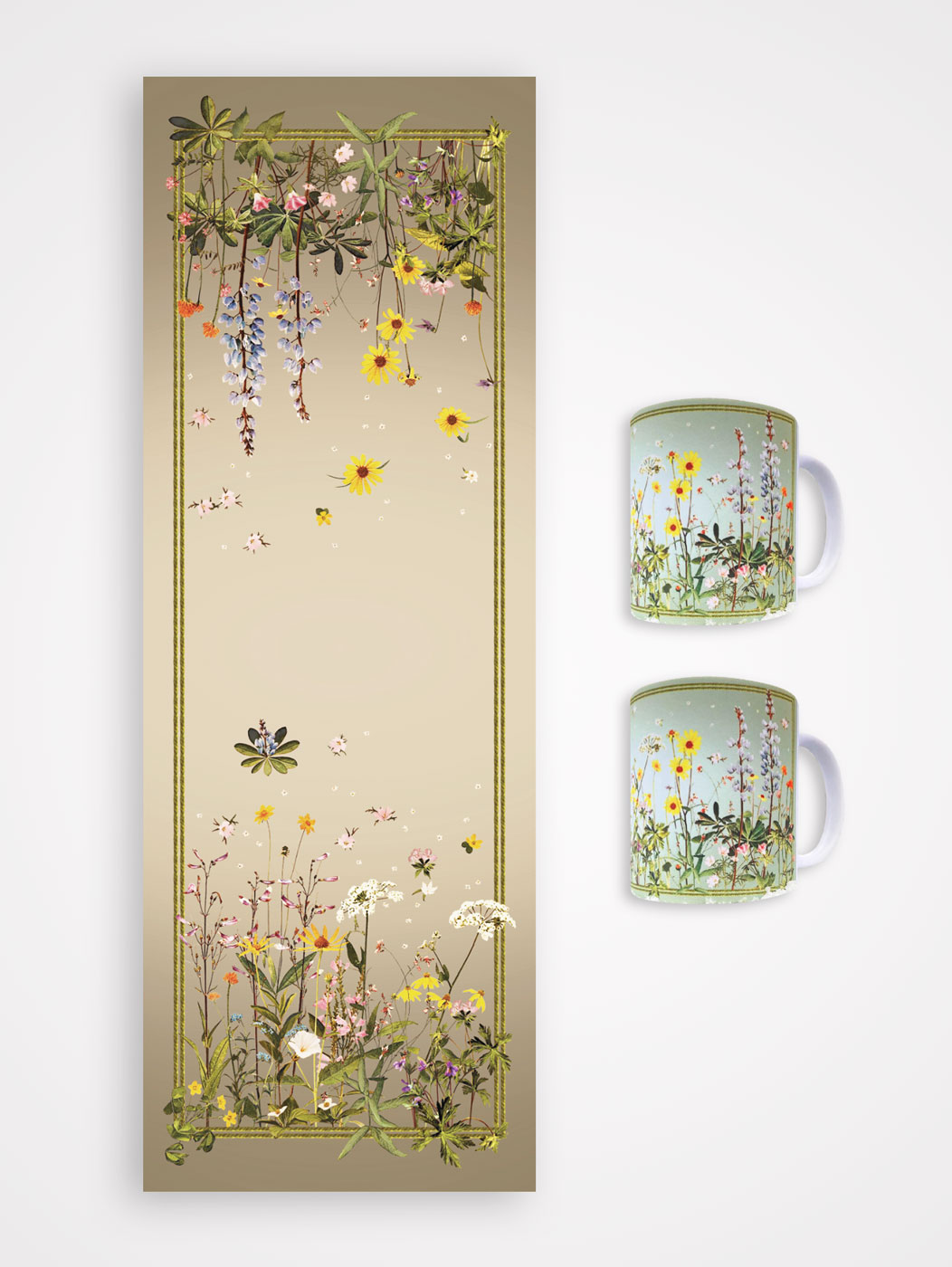 kit 1 étole et 2 mugs assortis Fleurs sauvages