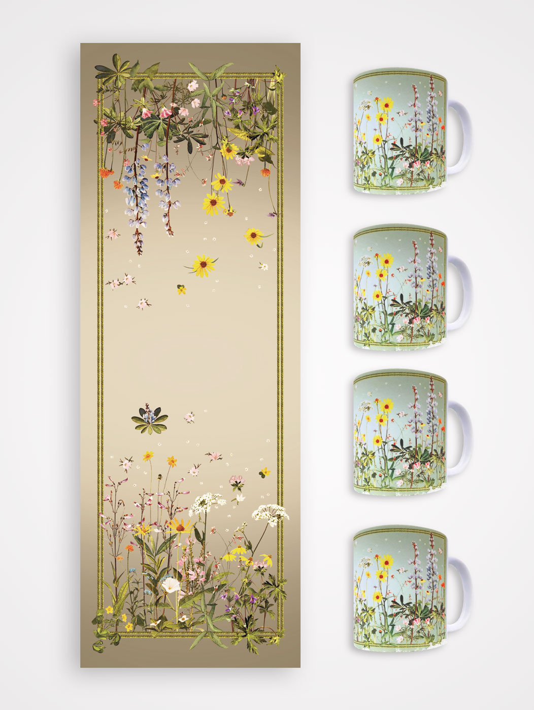 kit 1 étole et 4 mugs assortis Fleurs sauvages