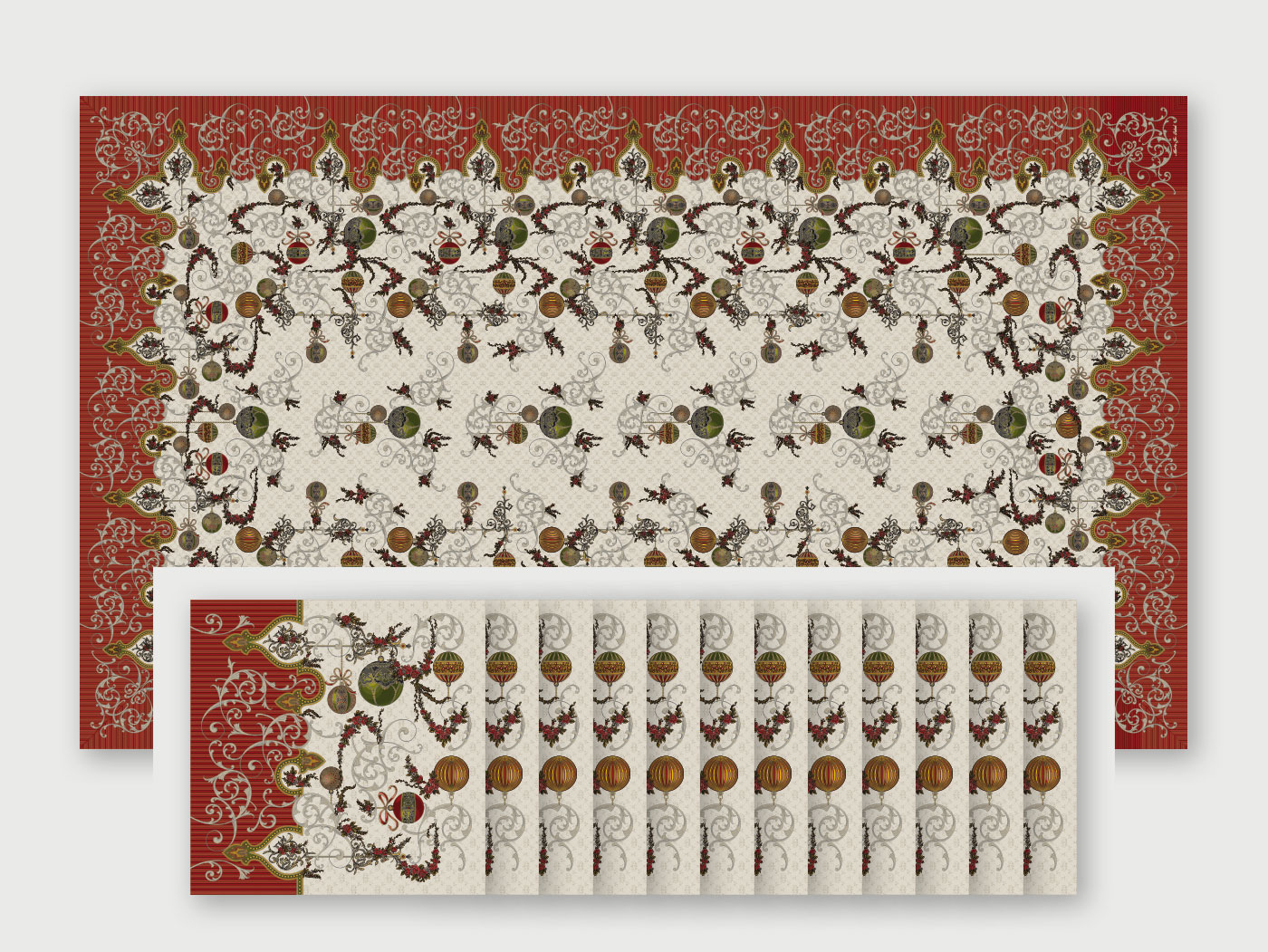 Dans ce kit :1 nappe 175 x 300 cm et 12 serviettes de table