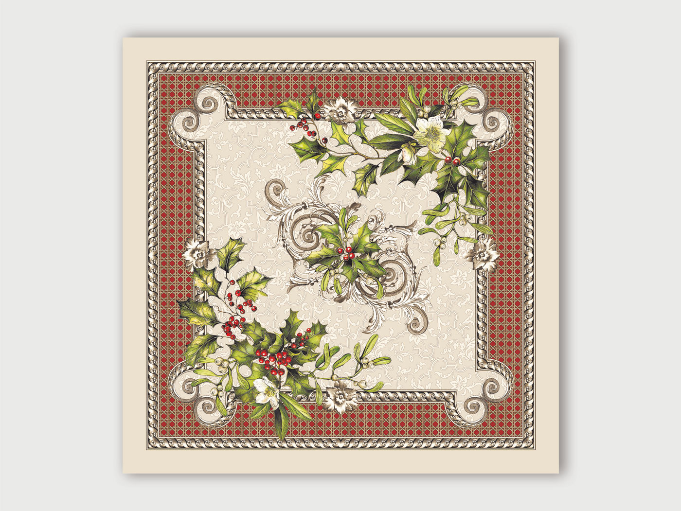 Entre le houx et le gui ornant de cette poésie textile… … la carte postale de la collection «Réjouissance» complètera par quelques jolis mots votre cadeau.