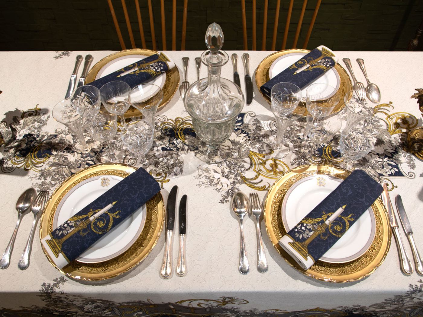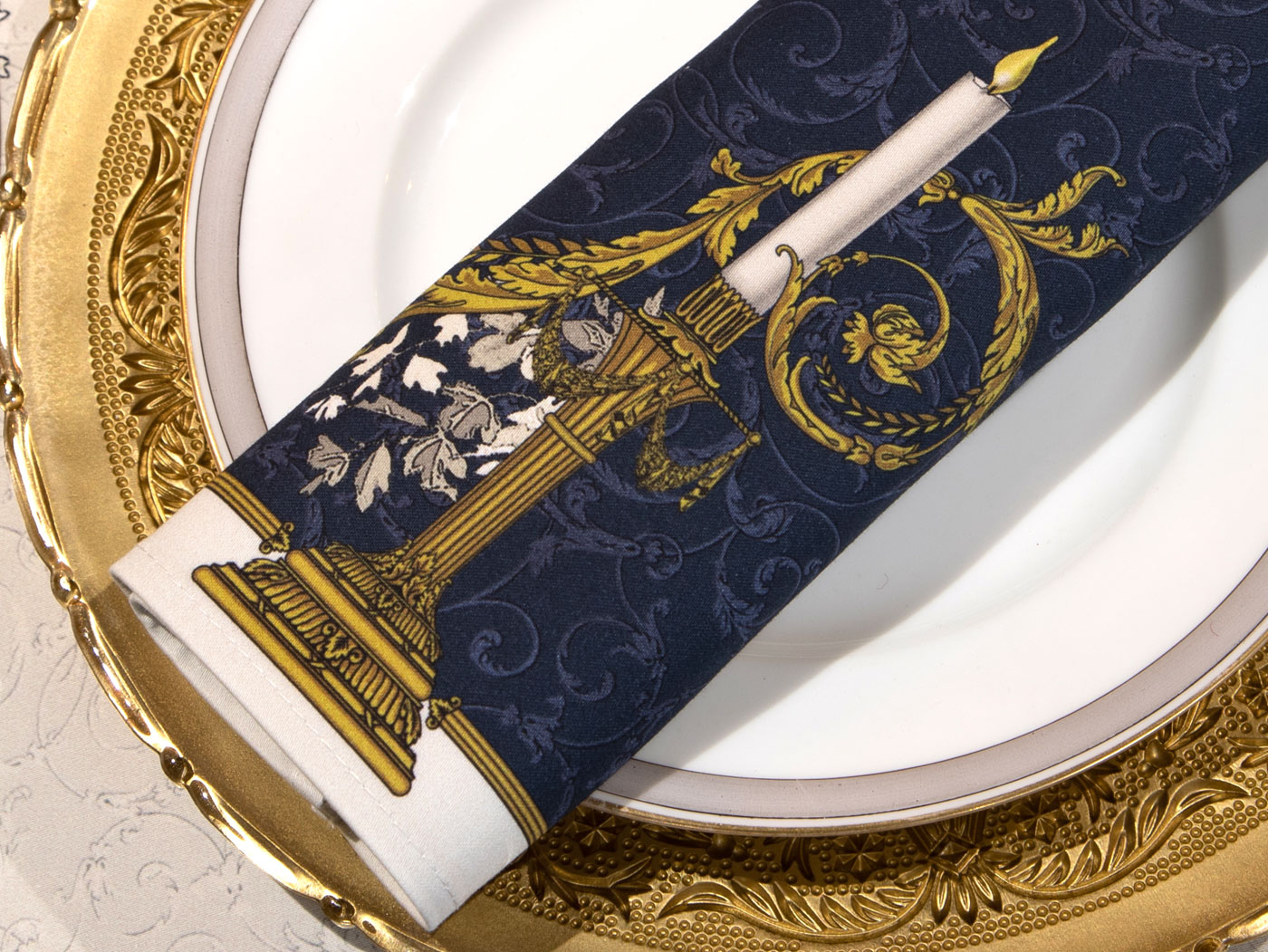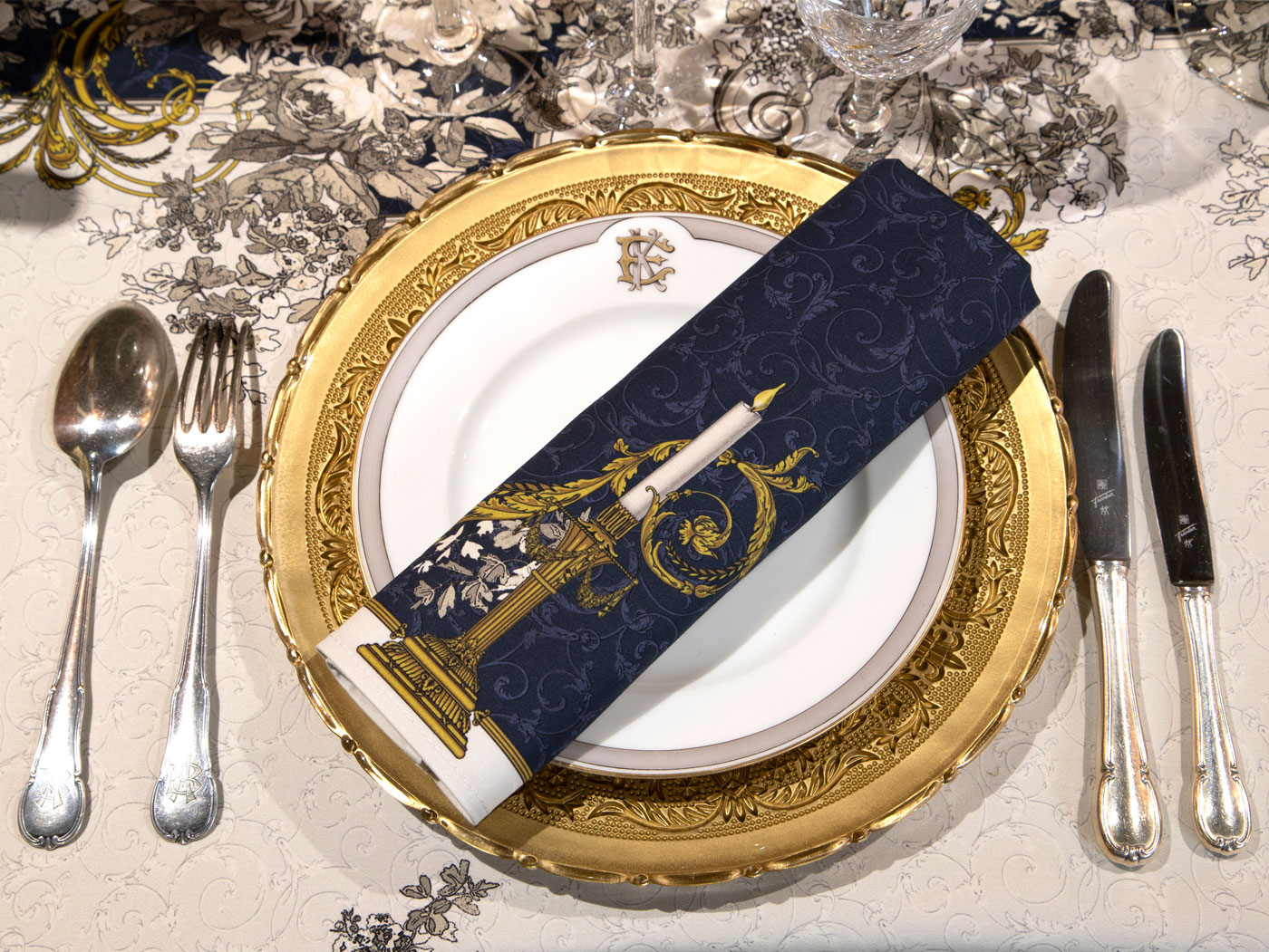 Si la magie de ses bougies est mise en lumière dans cette poésie textile… la serviette de table de la collection « Célébration » sublimera vos assiettes de fête…