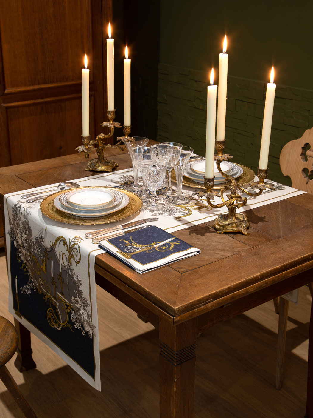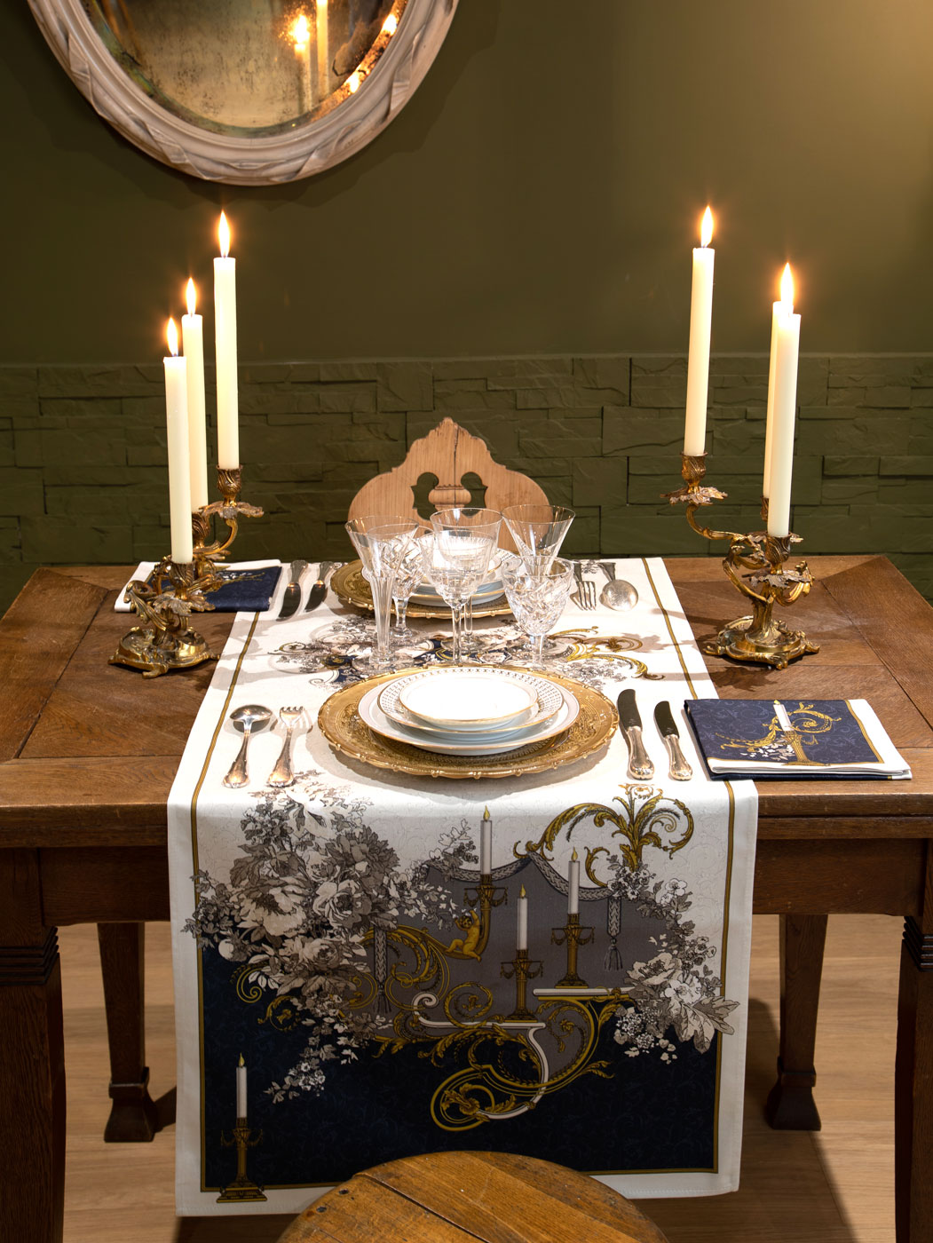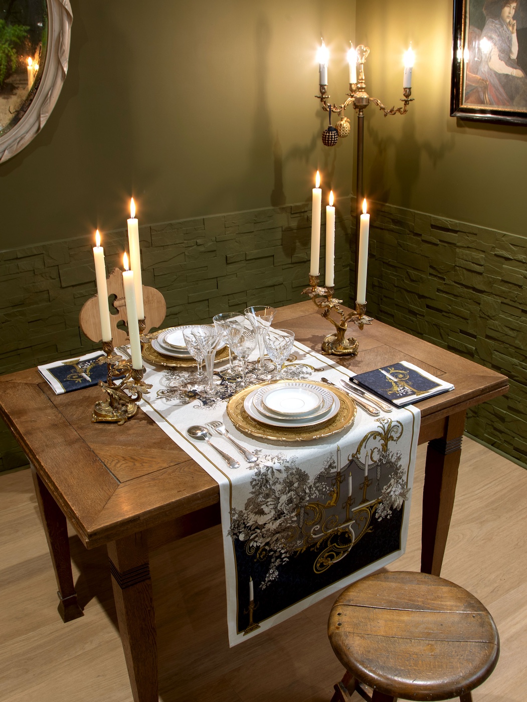 Si la magie de ses bougies est mise en lumière dans cette poésie textile… le centre de table de la collection « Célébration » enluminera votre table ou charmera votre tête à tête…