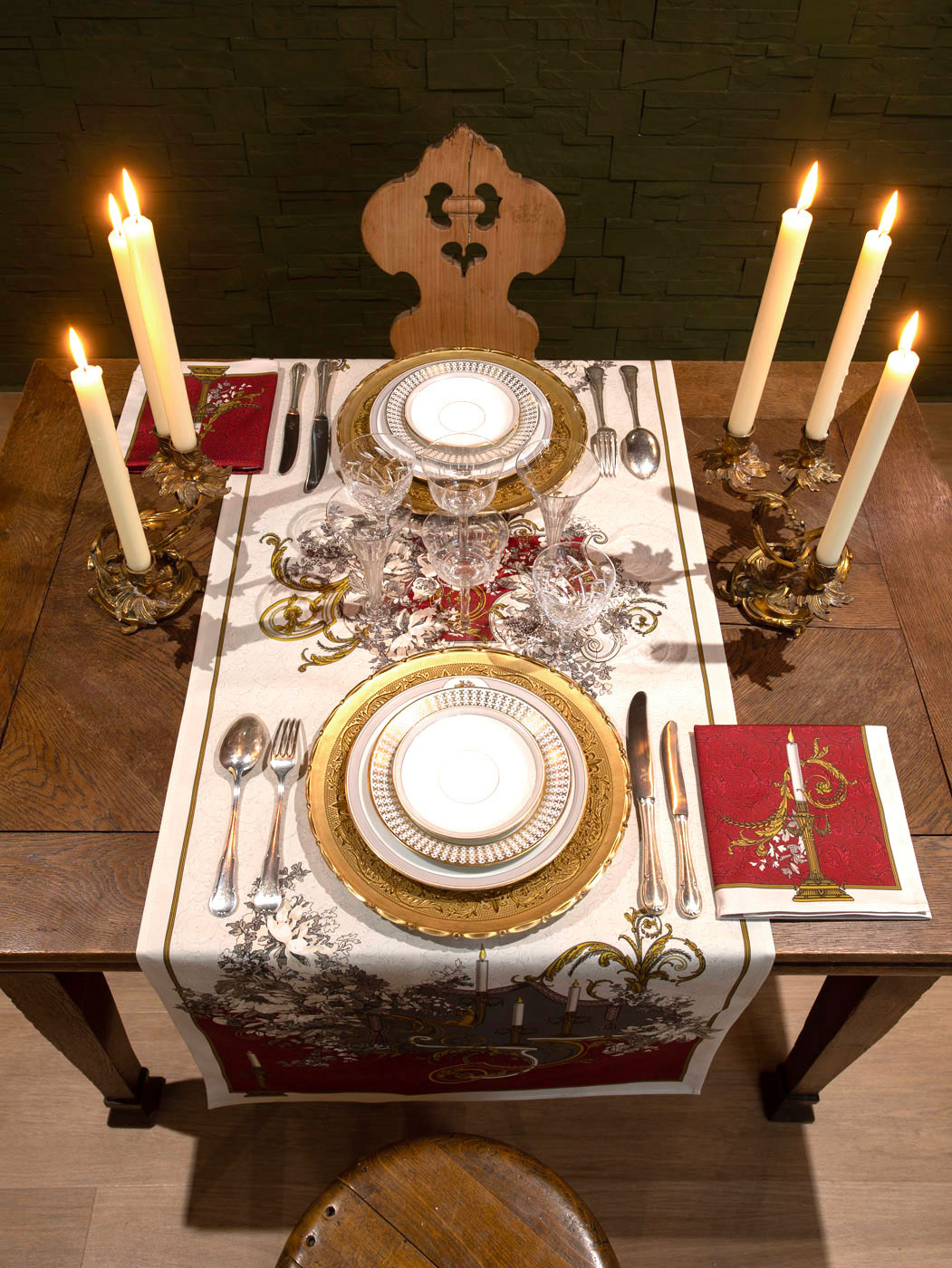 Si la magie de ses bougies est mise en lumière dans cette poésie textile… le centre de table de la collection « Célébration » enluminera votre table ou charmera votre tête à tête…