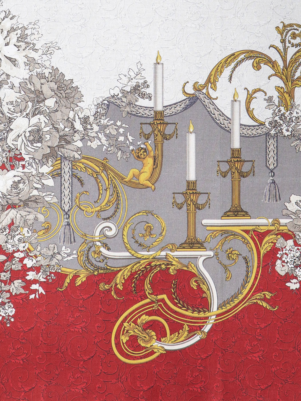 Cette étoffe est l’association même des motifs floraux foisonnants, issues des collections du Musée du Papier Peint de Rixheim à la Commanderie et des chérubins s’adossant aux volutes des branches des candélabres de bronze doré Louis XV, entremêlées aux riches passementeries d’un passé artistique dans les arts du luxe et du savoir-faire, ou la France durant 2 siècles rayonna du « Bord du Monde » aux rives de Mulhouse , comme Versailles su briller sur l’Europe .