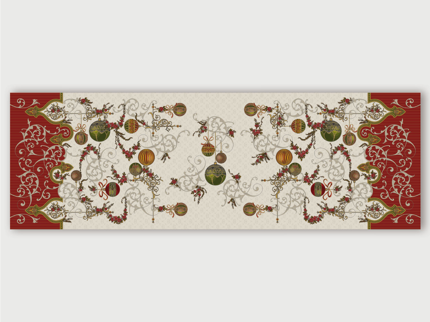 Pour un Noël tradition, optez pour l’union du rouge baroque, du vert impérial et de l’or sur fond craie…