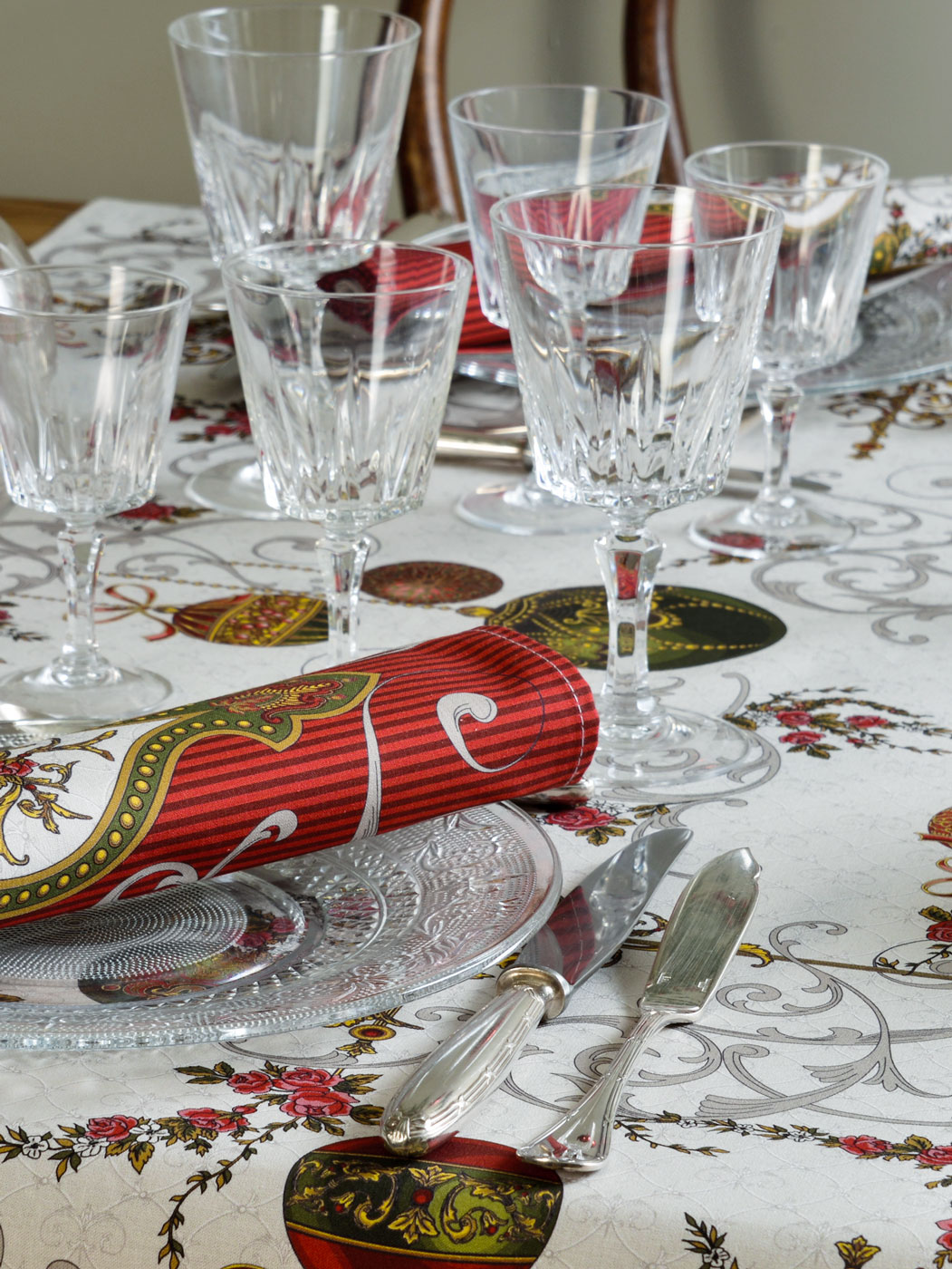Pour une table de 4 couverts (ronde ou carrée) : nappe 175×175