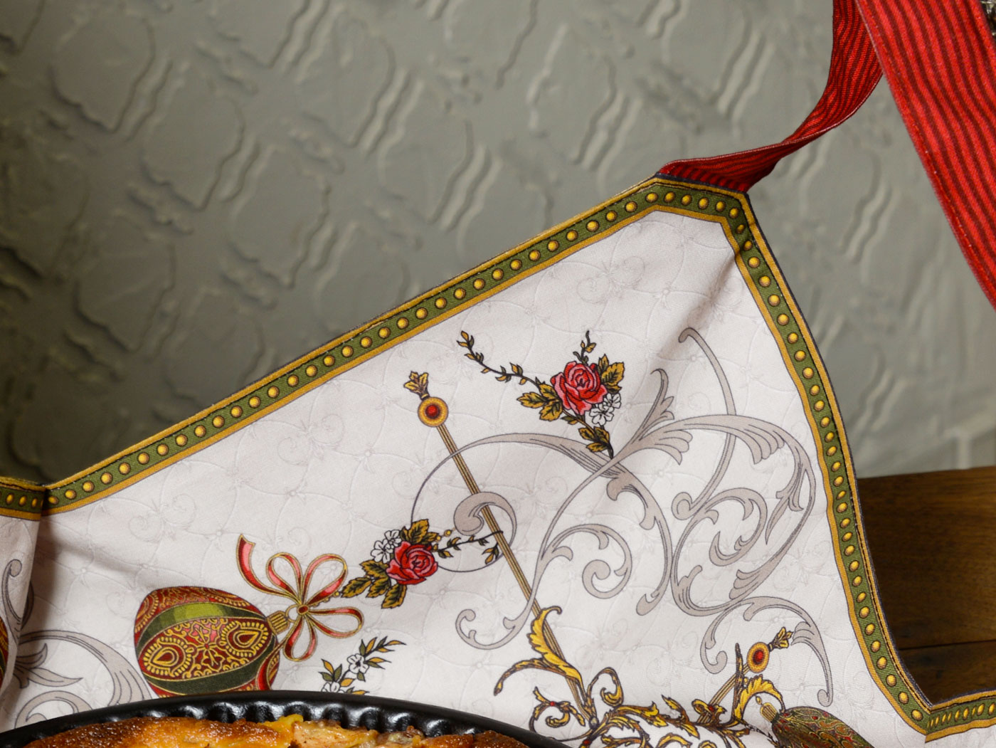Avec sa farandole de boules et de fleurs mariant magie et fraicheur, le sac à tarte de la collection « La Belle de Noël » vous permettra de balader en toute sérénité de maison en maison, tous vos bons petits plats !