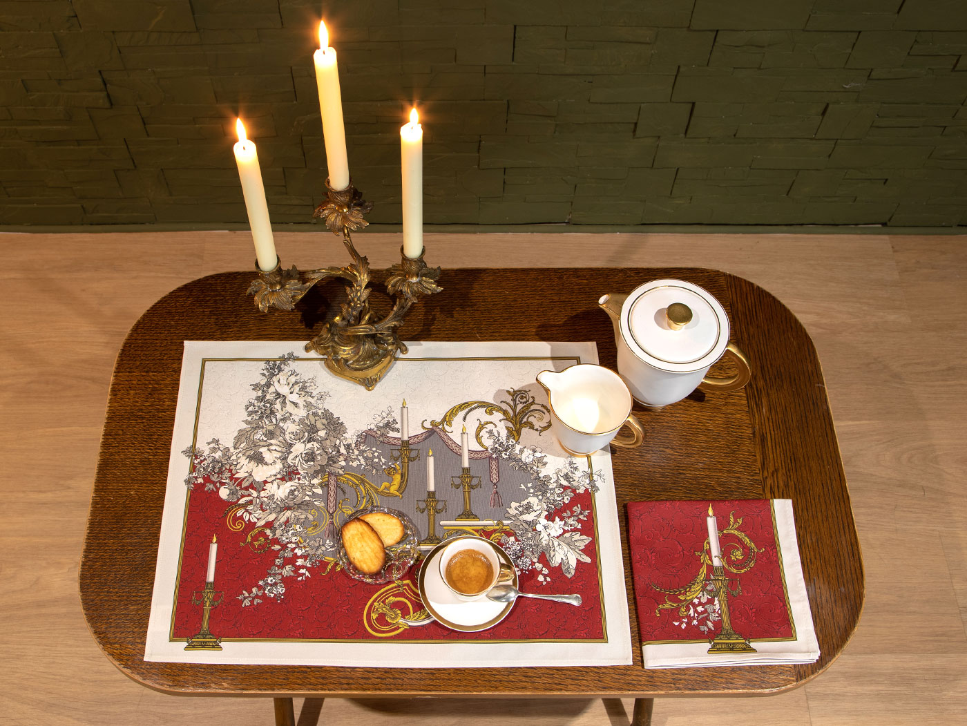 Si la magie de ses bougies est mise en lumière dans cette poésie textile… le set de table de la collection « Célébration » marquera tous vos repas… en soirée comme au petit déjeuner !
