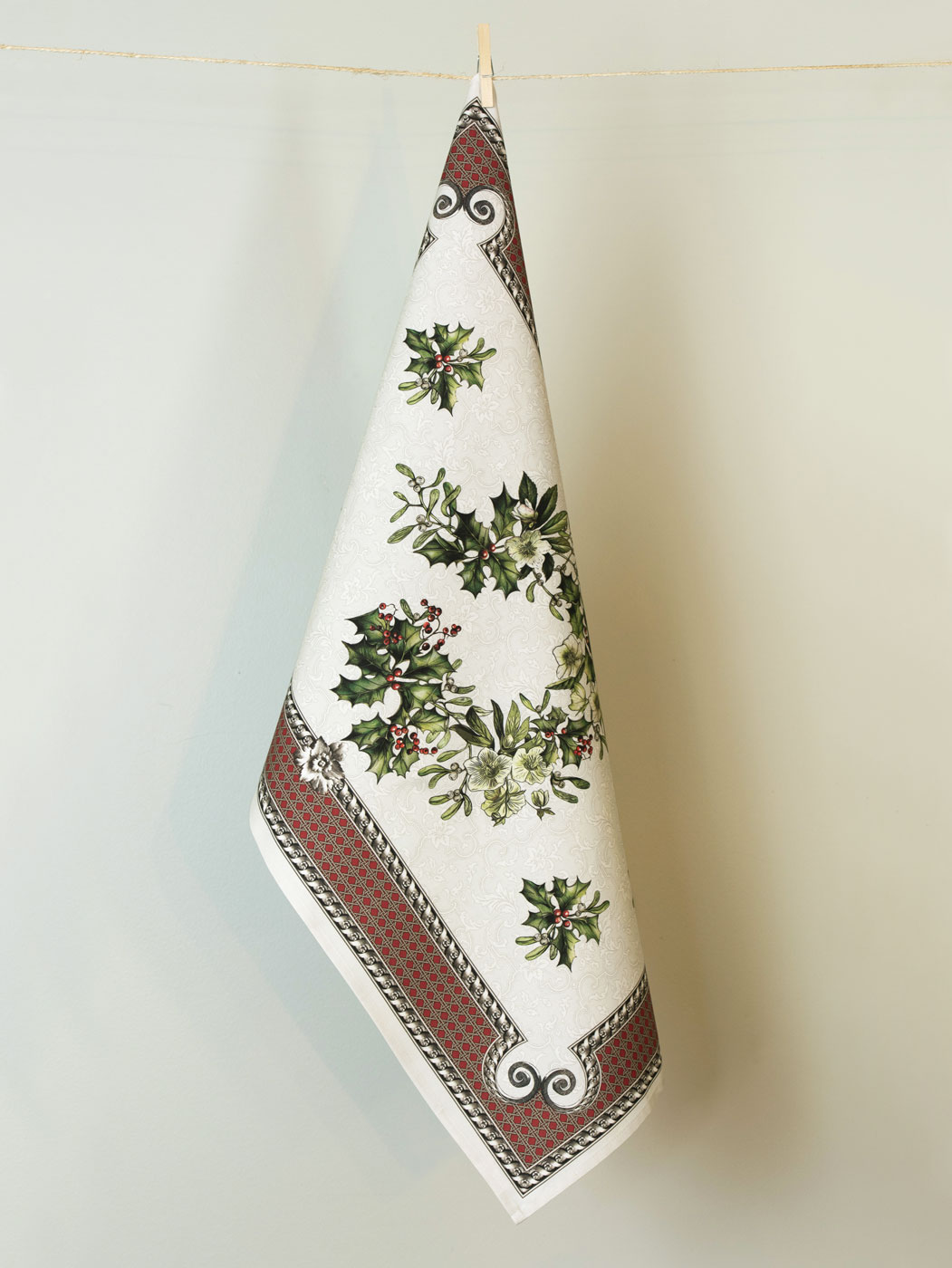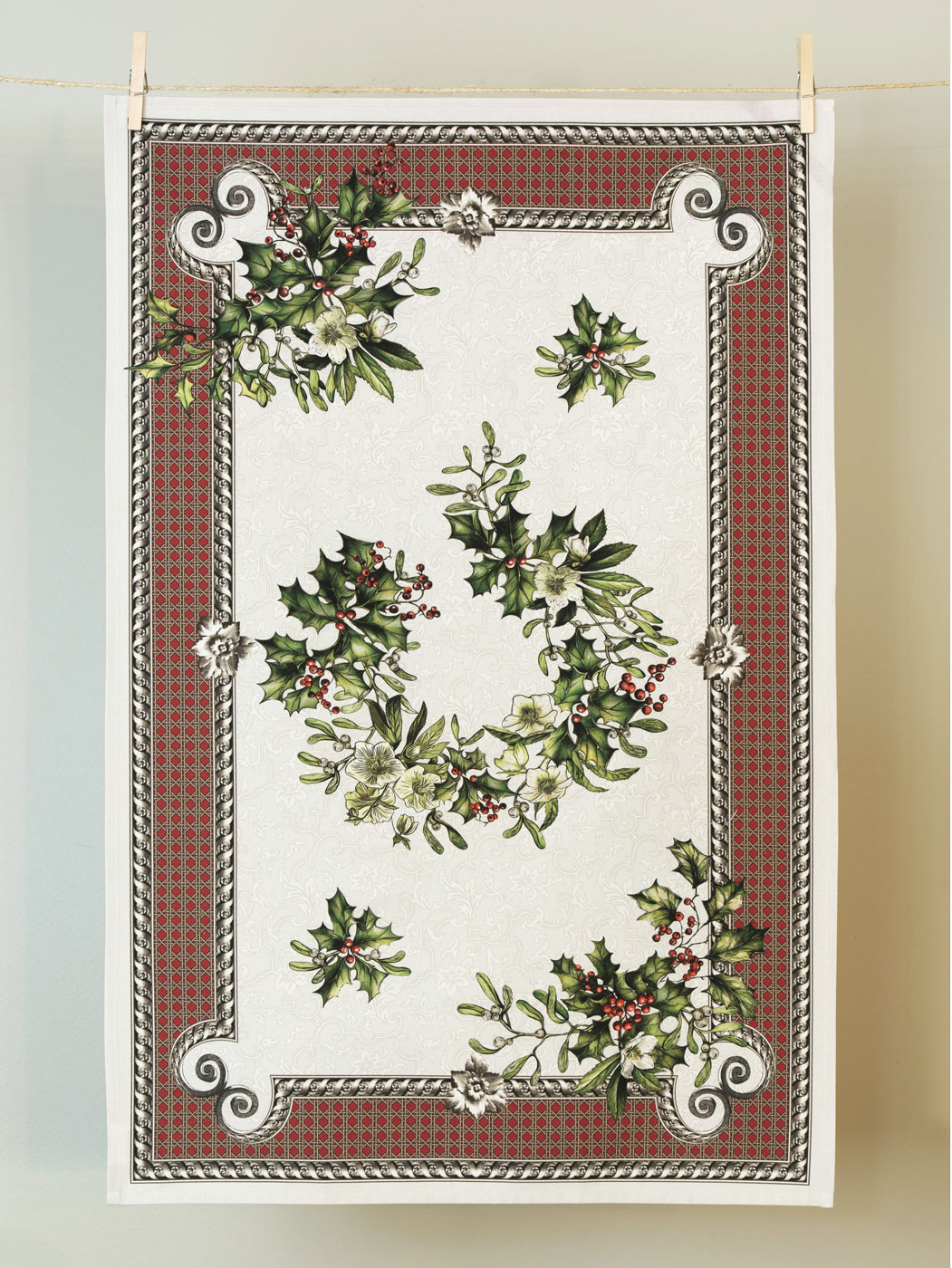 Entre le houx et le gui ornant de cette poésie textile… le torchon de la collection « Réjouissance » sera aussi utile que subtil pour votre cuisine et votre chef(fe) de cuisine…