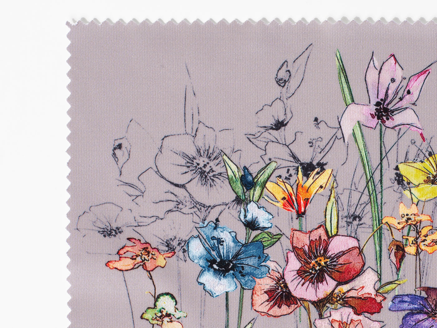 En microfibre imprimée, 70% polyester 30% polyamide, 250gr/m².