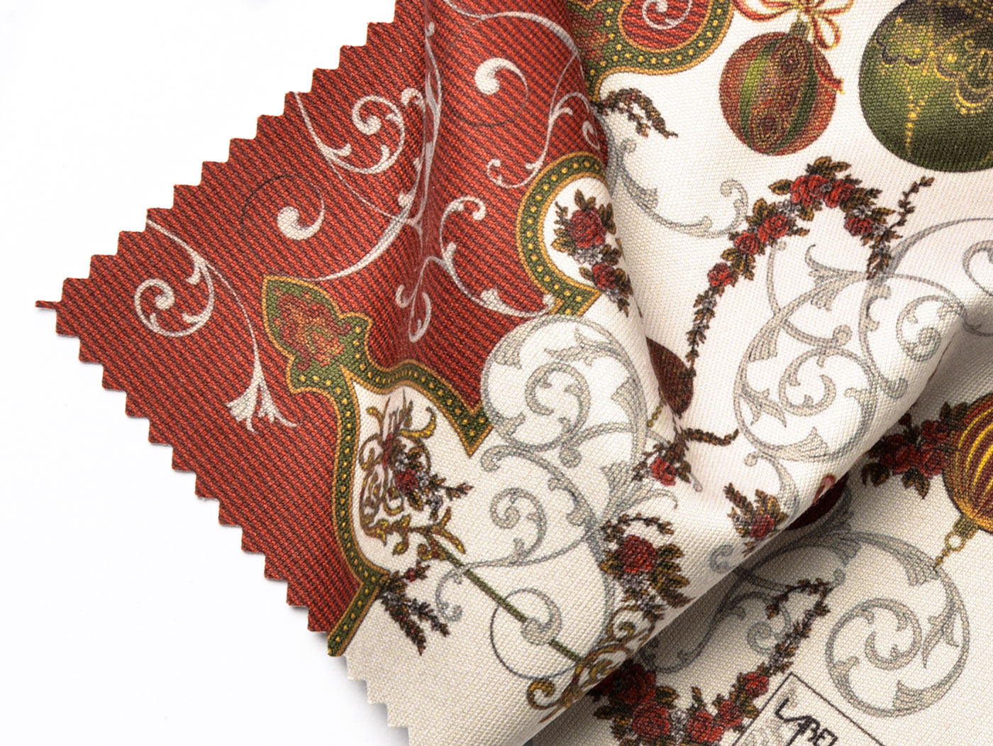 En microfibre imprimée, 70% polyester 30% polyamide, 250gr/m².